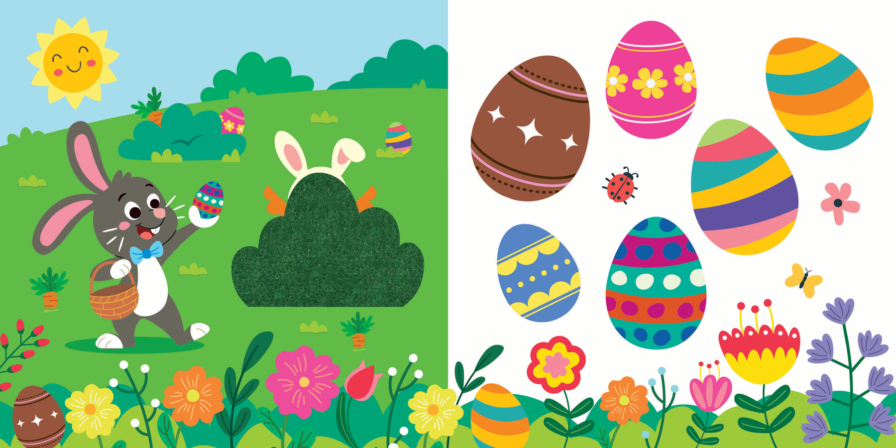 Les tout-petits prendront plaisir à découvrir les différentes textures, ainsi qu'à manipuler les volets et mécanismes du livre pour s'amuser à Pâques.