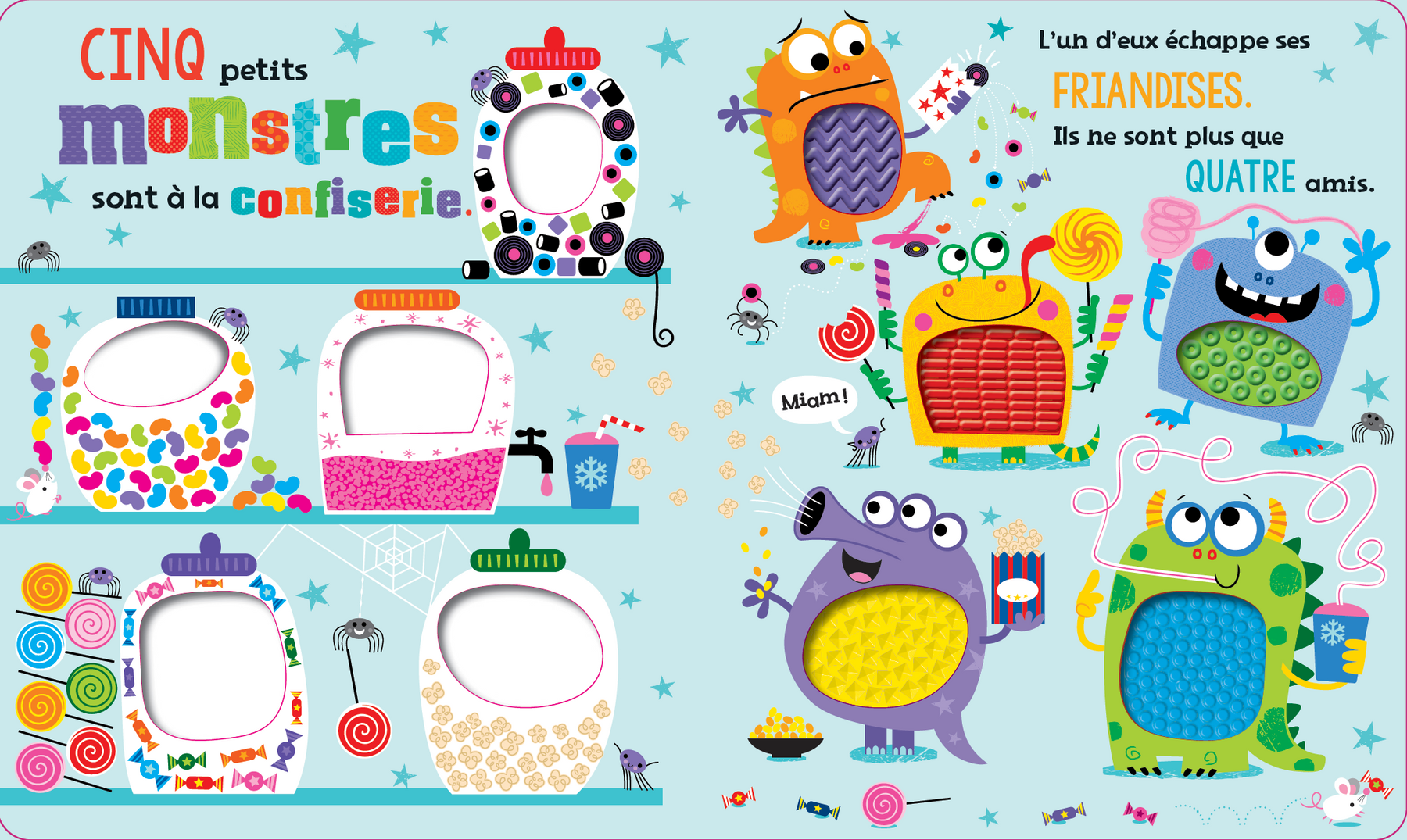 Ce livre interactif initie les tout-petits aux chiffres de 1 à 5 de façon ludique et rigolote.