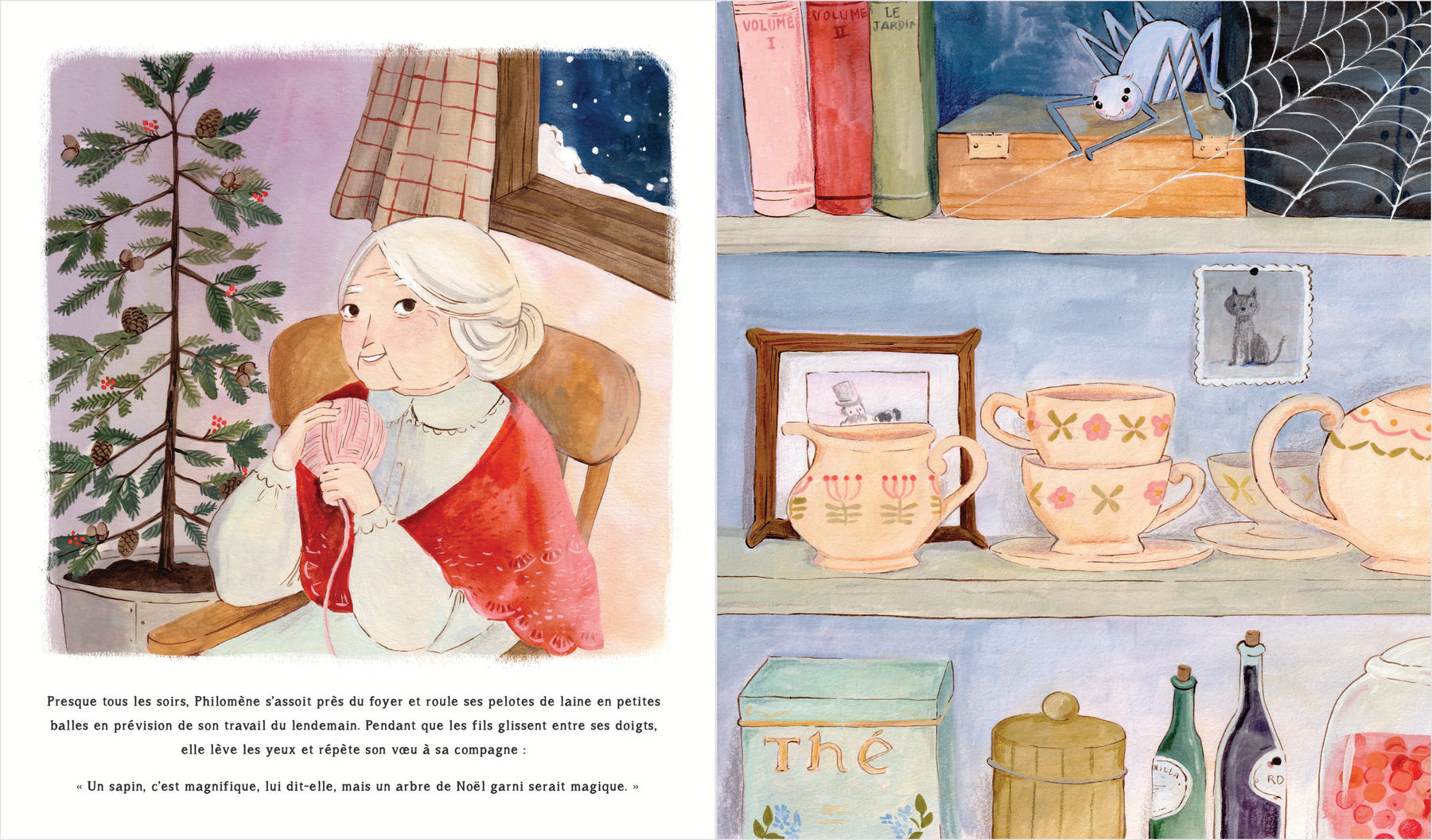 Philomène, une douce et vielle dame, vit paisiblement dans sa maison au cœur de la forêt. Avec sa compagne Céleste, une petite araignée, elle rêve d'un sapin magnifiquement décoré.